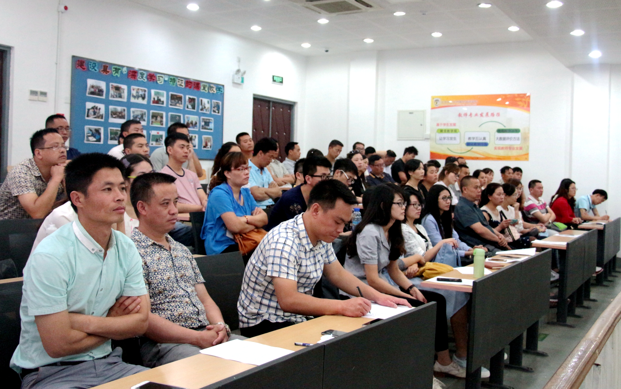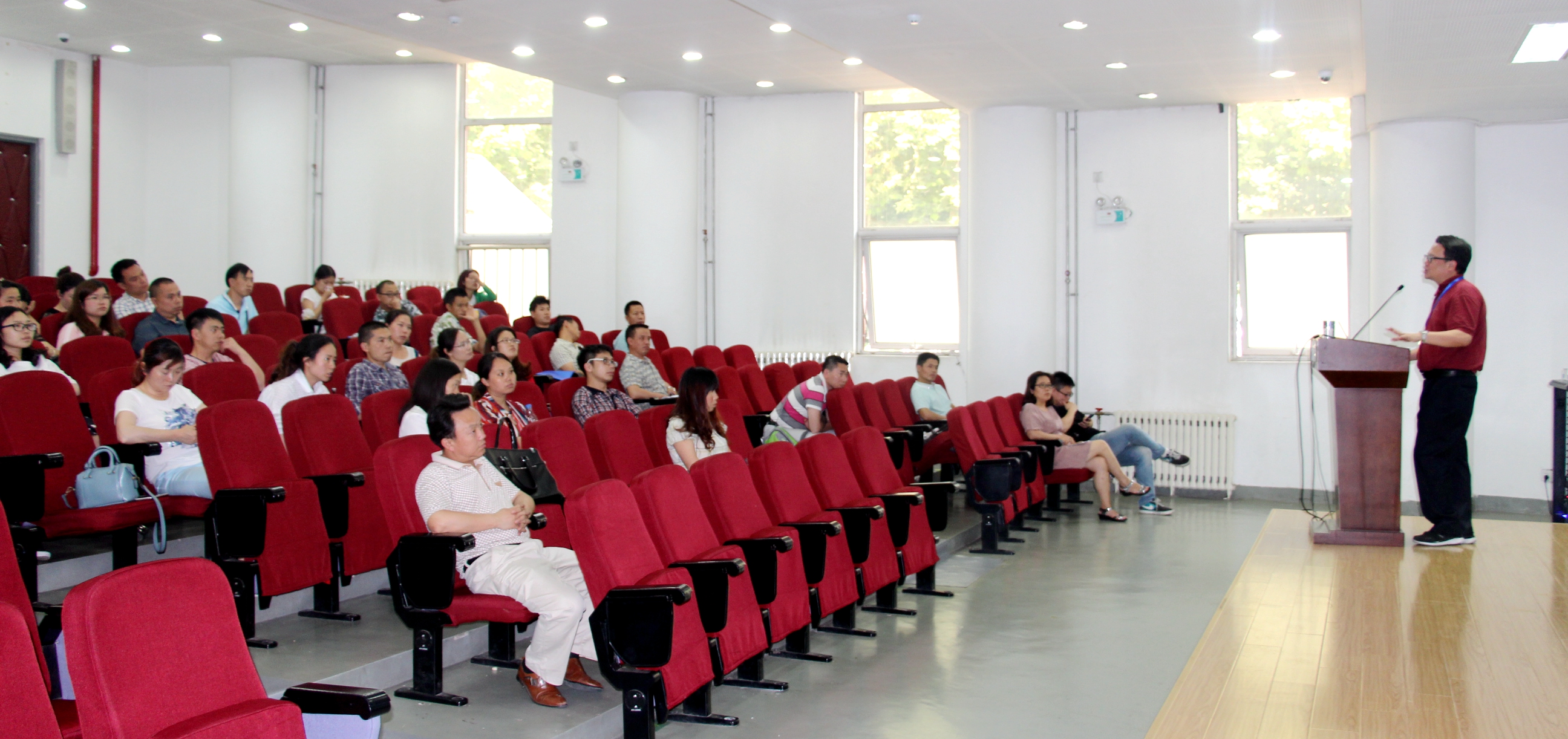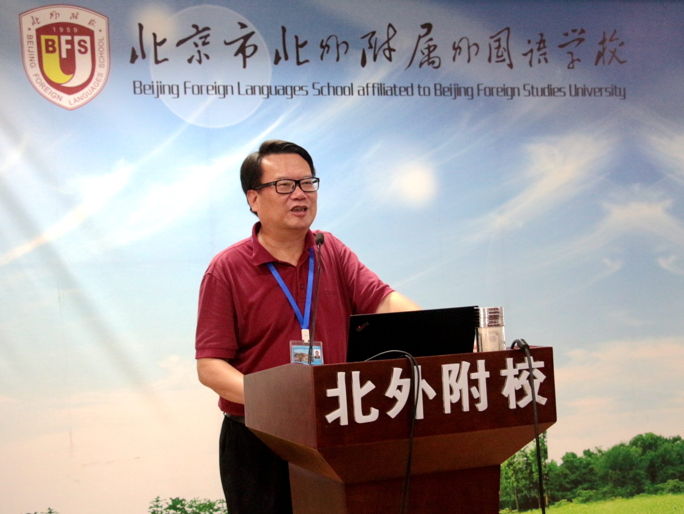 6月2日,北师大“彩烛工程”第十五期培训班56人也同时来校参观学习,迎来教育考察团参观学习“小高峰”。针对本期培训班学员主要来自于四川、贵州等偏远山区中小学且留守儿童居多的情况,学校宿管中心和心理室专门为此开设就安全教育和心理教育的主题课程,不仅参观了宿管中心,还观摩了心理冥想课程。在下午的专家讲座环节,北京外国语大学校长助理、北外附校校长林卫民结合自身多年来管理学校的经验,以中小学教师应有的基本修炼为主题,对如何成为一名好教师,教师自我修炼的主要策略和途径等方面进行了精彩的报告。