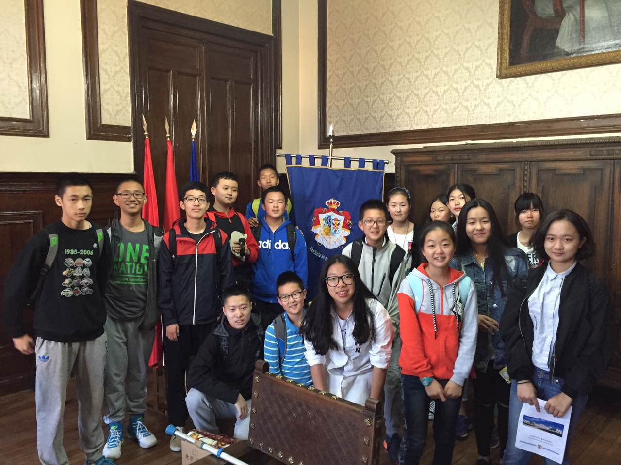 附校学生和姊妹校校徽合影