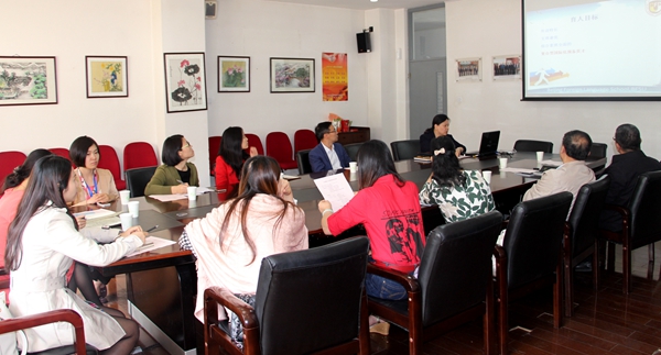 来宾一行参观完小教楼后首先同于苒进行了座谈。于苒致欢迎辞,欢迎孙维玉一行来访我校,并向客人介绍了我校小学办学及教育教学情况。随后小学英语教研组组长刘蕾就来宾感兴趣的外教课程及外教管理方面做了详细的介绍,并解答了来宾的问题.孙维玉表示十分希望小学能选派有经验的老师为三水附校的老师提供培训和指导。