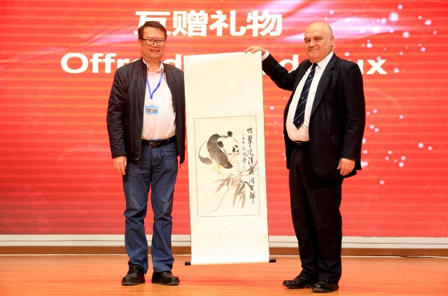 校长林卫民在欢迎仪式上致辞。他指出,双方学校的合作与交流不仅能使学生拓宽视野,了解中法两国文化,更能让学生在文化交流中不断提升自身素养。林卫民表示,多年前他本人曾与巴黎德萨伊中学有过交流,今天与该校师生的见面让他倍感亲切。林卫民希望两校学生可以成为中法友好交流的使者,自觉传播两国的优秀文化和精神,加深了解,共同进步。法方学校带队领导Sautel先生代表德萨伊中学讲话,对我校真诚而周到的接待表示感谢。随后,法方学生向我校赠送了礼品和书籍,我校为德萨伊中学准备了一幅中国水墨画,并为法方学生准备了我校的校服,让他们更好地融入和理解中国校园文化。