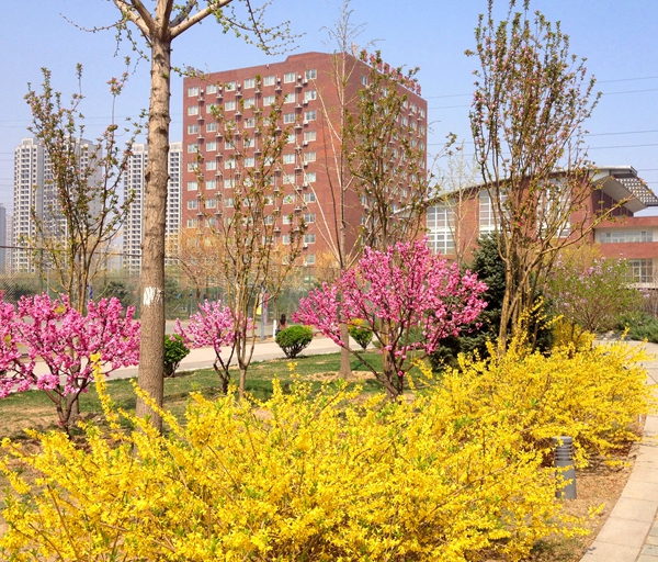 春天如期而至,桃花盛开,杏花争艳, 春光正好。在蓝天白云的映衬下,我们的校园如此美丽!