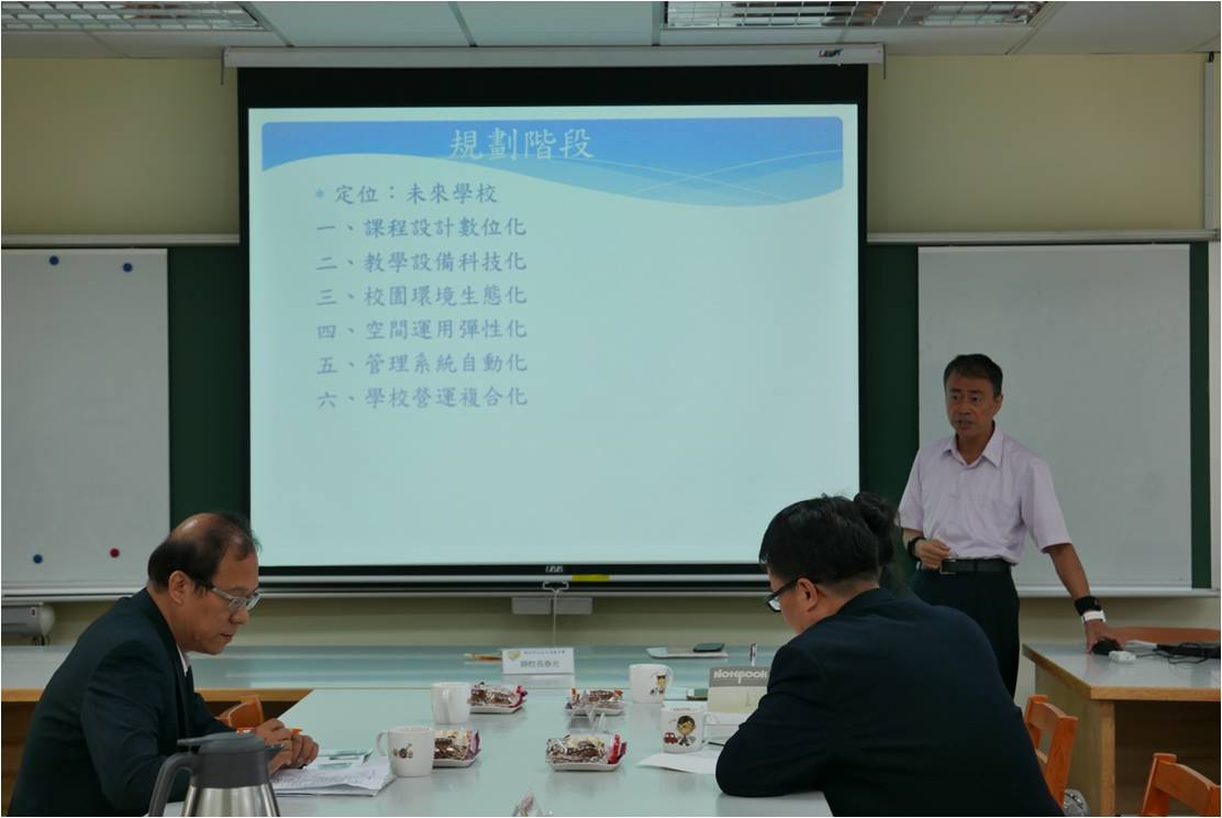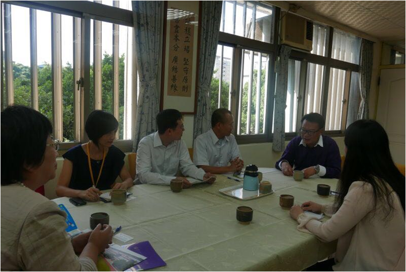 在与新北市北大附属高级中学的校长薛春光的座谈中,考察组一行听取了薛春光校长对学校的办学理念、学校定位、未来发展的战略规划、课程设置等方面进行了详细介绍,并就校园生态环境系统建设、与周边社区如何友善相处、校园文化建设等方面交换了意见,并参观了校园。