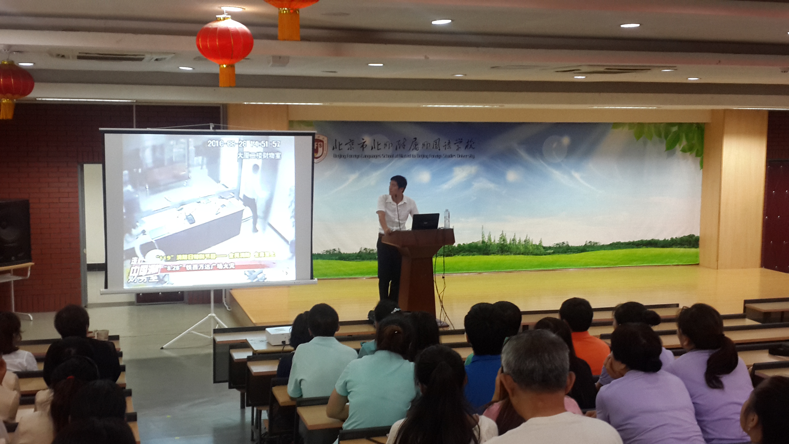 9月2日下午,北外附校物业公司全体员工召开了新学期安全生产培训大会。大会主旨是进一步提高员工消防安全意识及高度强调食品安全的重要性。培训大会特邀消防安全宣传中心李海龙老师进行了消防安全知识培训。