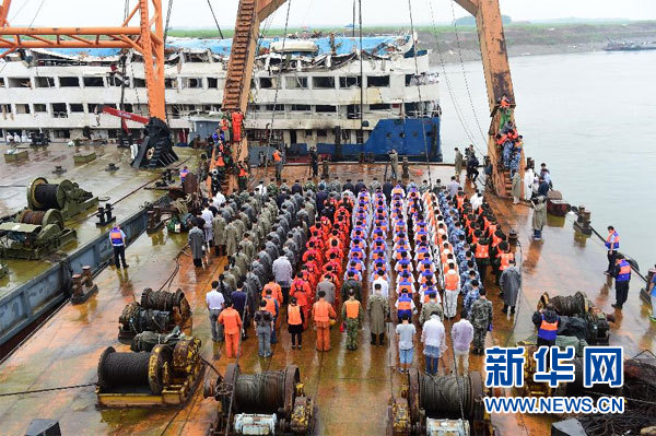 新华网北京6月7日电(记者梁建强、罗鑫)江风呜咽,人群肃立。低沉的汽笛声中,“东方之星”翻沉事件救援现场人员以及遇难者家属面向遇难船舶站立,垂首默哀。在遇难人员的“头七”祭日,人们为生命的逝去悲伤,也祈愿逝者安息、生者坚强,更希望通过彻底查明事件原因,完善公共安全机制,使悲剧永不上演。