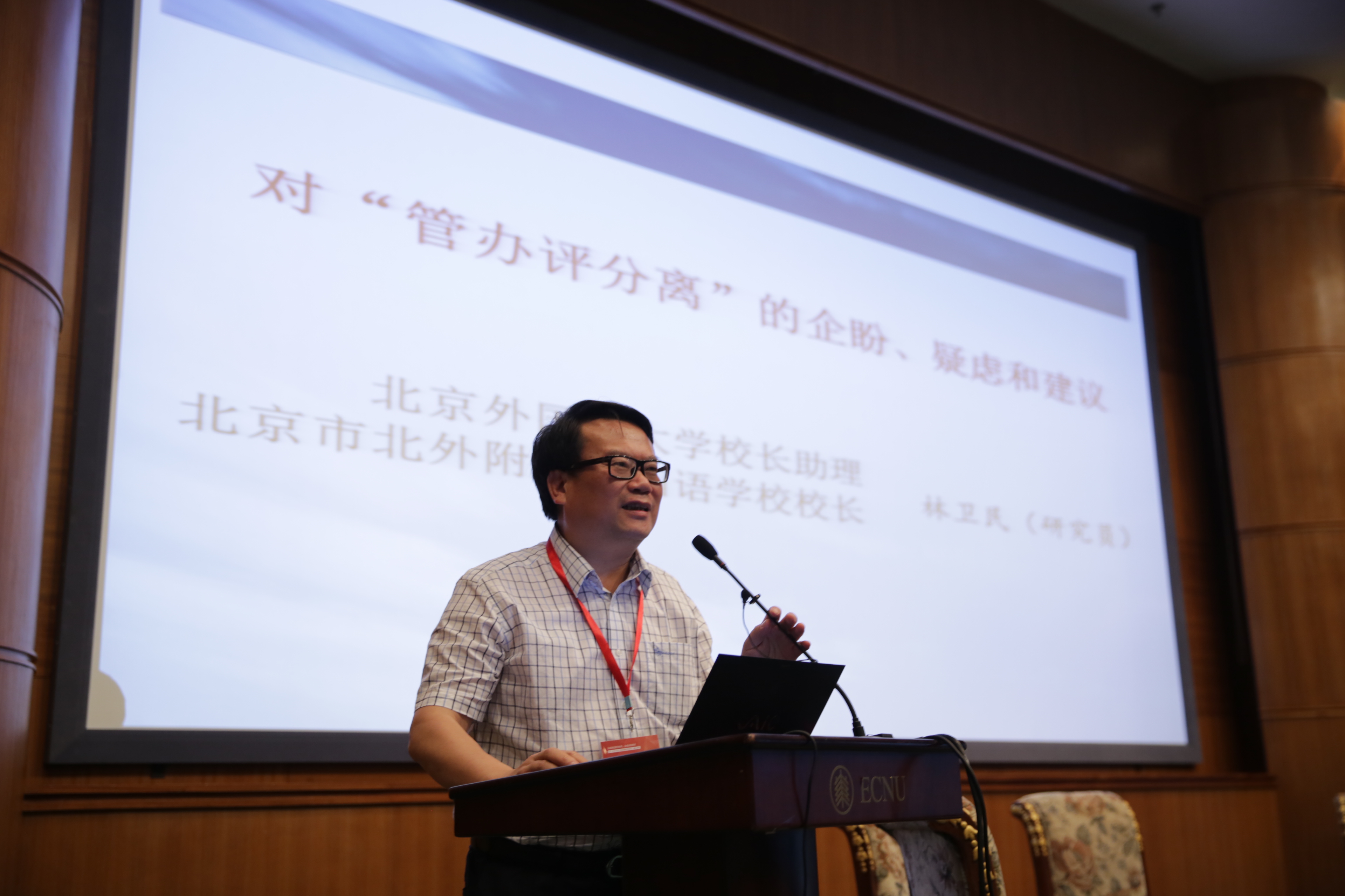 5月25日,由中国教育学会、中国高等教育学会、华东师范大学、光明日报共同主办的纪念《中共中央关于教育体制改革的决定》颁布30周年大型论坛在华东师范大学举行。中国教育学会会长钟秉林、中国高等教育学会会长瞿振元、华东师范大学校长陈群、光明日报社副总编辑刘伟出席论坛并讲话。论坛设有基础教育专场和高等教育专场两个分论坛。我校校长林卫民作为全国基础教育学校唯一一名受邀校长在论坛做题为《对“管办评”分离的企盼、疑虑和建议》的发言。