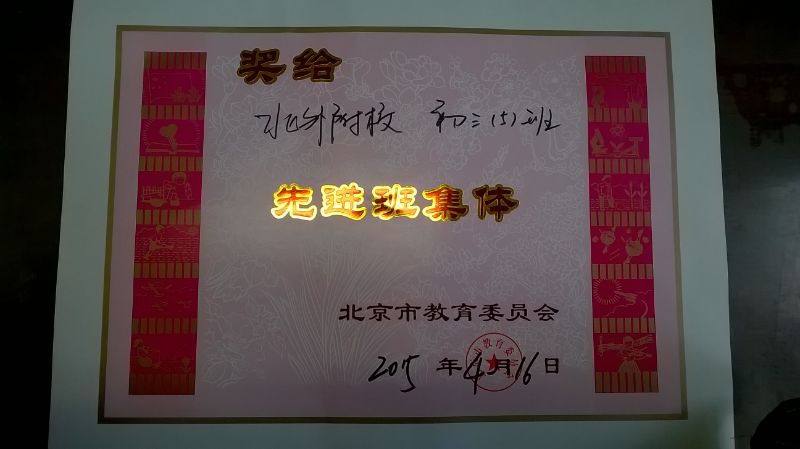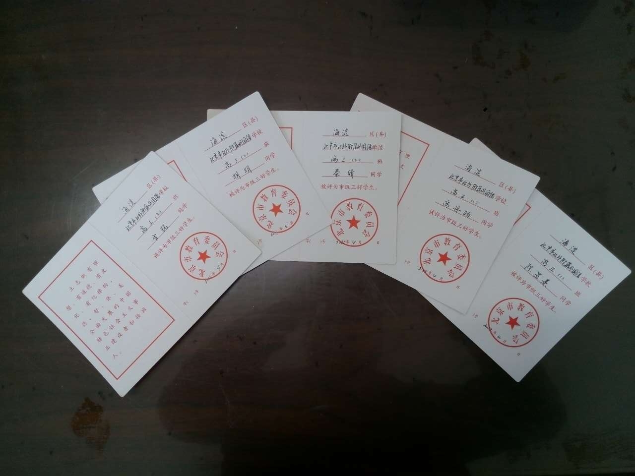 根据北京市教委、海淀区教委等上级部门关于评选市级、区级三好学生、先进班集体的工作要求,经过严格的评审、公示、上报等程序,经上级有关单位审查批准,我校初三(4)班李凡特同学、初三(5)班尚姁佼、赵晨瑞同学、初三(6)班丁子喻同学、初三(8)班陈令仪同学,高三(1)班陈昱熹、高丹旸同学、高三(2)班秦晴、胡玥同学、高三(3)班金铭同学荣获“北京市三好学生”称号;初中部彭宝萱、谢效洁、蒲媛媛等53名同学,高中部牛浩源、许宝方等34名同学获评“海淀区三好学生”。初三(5)班荣获“北京市先进班集体”称号。高三(2)班荣获“海淀区先进班集体”称号。