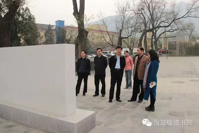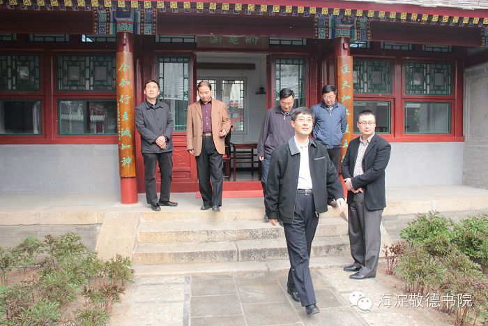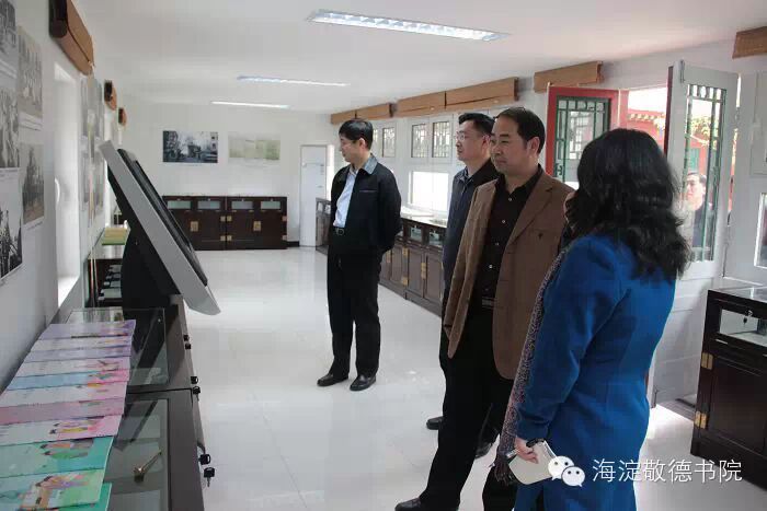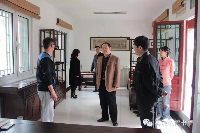 各位专家首先参观了书院自然景观和建筑格局。随后参观考察了书院的功能室,了解了书院的功能定位和课程体系。王定华司长总结了书院的四个特点:一是静。书院远离都市喧嚣,在这么安静的地方,传播优秀传统文化,天时地利人和兼具;二是雅。在清新古朴的中式建筑、姹紫嫣红的大自然中切磋琢磨,老师肯定有长进,做人的品位也会更加高雅;三是深。在这里传播优秀传统文化,层次要深入一些,要求更高一些,请名家名人来主讲,做客,发挥种子作用、引领作用,使海淀区中小学中华传统文化教育上台阶;四是新。书院是与时俱进的,不是与外界隔离而孤芳自赏的,请的是当今活跃的教授,关注日新月异的社会,是对活生生的人的尊重。王司长希望敬德书院能把这些特点保持住,书院才能长盛不衰。