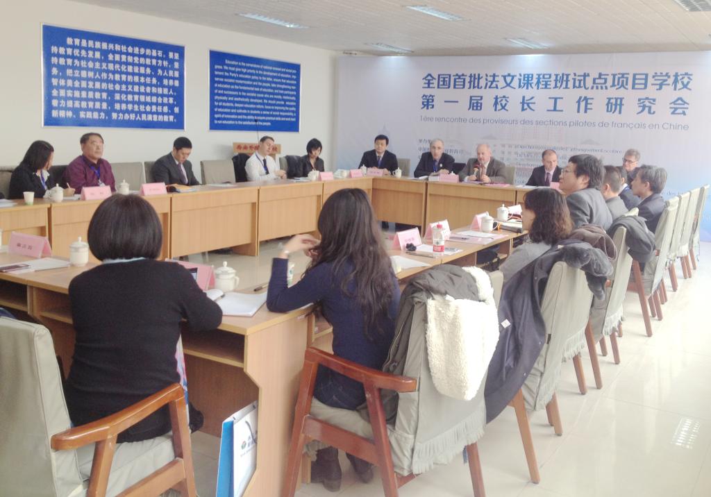 本次会议由国家教育部主办,来自法国教育部的官员、负责法文课程班项目的北京第二外国语学院的法语专家,以及全国首批八所法文课程班试点项目学校的校长及部分法语教师参加了此次会议。