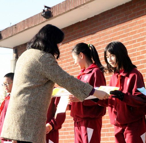 11月24日,我校小学在操场举行了2014-2015学年第13周升旗仪式暨科技节闭幕式。小学校长于苒出席闭幕式并为获奖同学颁奖。出席闭幕式的还有小学副校长郭丽丽、贾志庭、杨安来以及小学教务主任李琳等。
