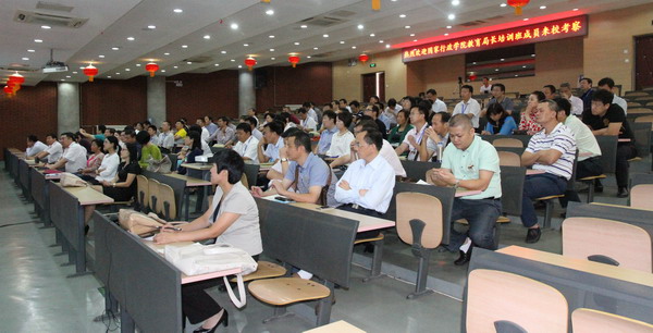 林卫民校长代表学校热烈欢迎全国教育局长培训班参训学员的首次到访。林校长在向来宾介绍了附校的办学思路、学校改进行动方案的内容与实施及国家级高中特色发展试验项目、中外合作办学情况等;林校长结合时下教育改革的最新形势及附校的实际情况,从变革的动因、精神、动力及密码四个方面分析了“变革的力量”,并进一步分享了自己的校长生涯及最新教育教学理念,同时就考察团关于学校在办学模式、管理机制等方面的提问做了详尽地解答和交流。