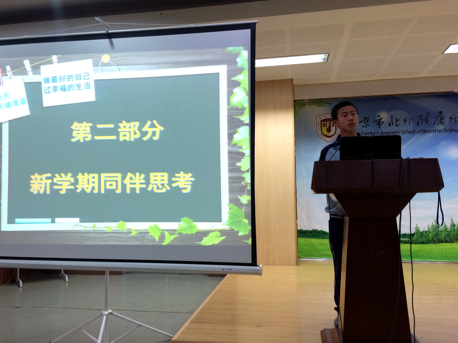接下来便到了同学发言的时间了,初三二班的田茁弘发表了他对于初三的想法。他主要介绍了怎样进行时间规划,具体进行了房间整洁、控制游戏、课外拓展和十五分钟原则的讲解,分享自己的学习方法,使每个同学都受益匪浅。