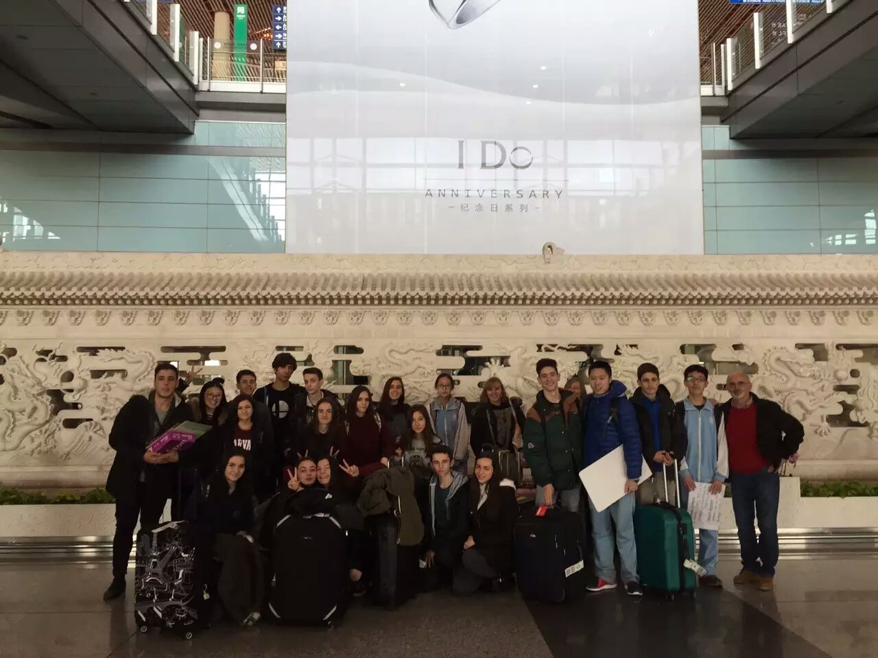 我校师生与西班牙姊妹校18名师生在首都机场合影留念