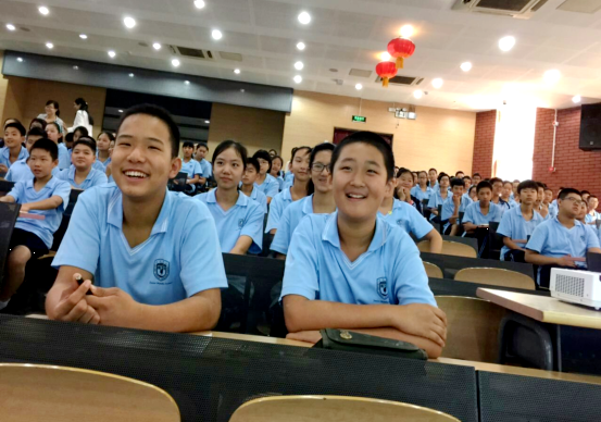 此次讲座以班级间竞赛、师生间有奖问答的方式进行,现场互动频繁,全场气氛热烈。讲座开始,李广智就向同学们提出了一个问题:international是哪一国的语言。接着,向大家揭秘,international在法语、西班牙语以及德语中也是这样写的,只是读法不同。带着浓厚的兴趣,同学们用响亮的声音一起学习这个单词在不同语言中的发音,有的同学勇敢地站到讲台前试读,赢得全场热烈的掌声。