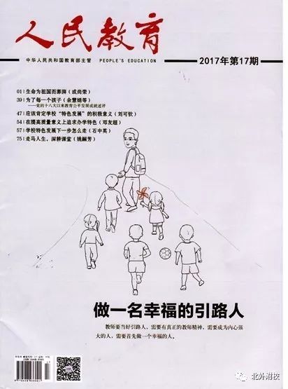近日,《人民教育》2017年第17期刊登了我校校长林卫民撰写的,题为《“特色崇拜”与办学者的教育使命》的理论文章。文章认为,学校特色是基于共性的个性,而不是创新名义之下的造作;是长期追求优秀品质的成果,而不是短期刻意打造的产品;是实实在在的“生命体”,而不只是标语、口号等写在墙上的东西。不要刻意去制造学校特色的奇迹,扎实地将日常每一件事做正确,这样的“没有特色”,可能才是最本质的对于学校特色优势发展的追求。文章中的事实论据来自林卫民在北外附校的工作经历,以及由此引发的关于教育使命的深度思考。