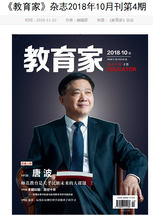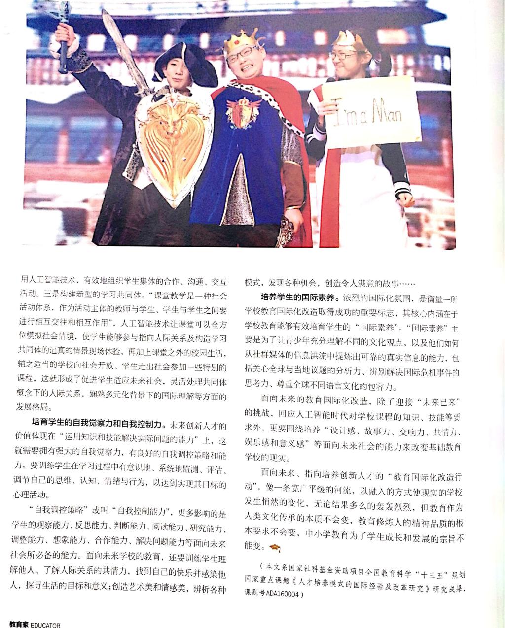 《教育家》2018年10月刊第四期登我校校长林卫民文章——《面向未来学校的“教育国际化改造”》