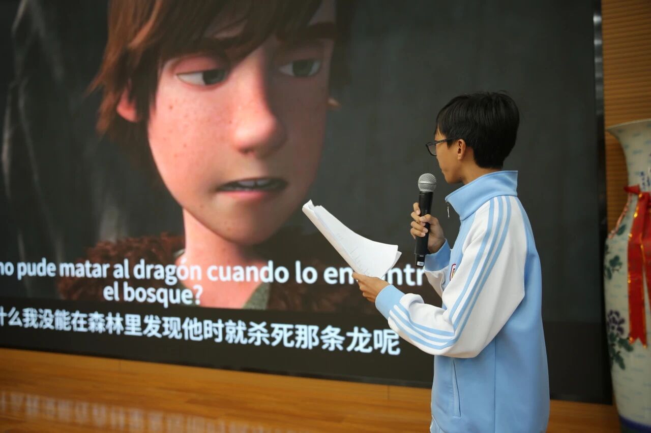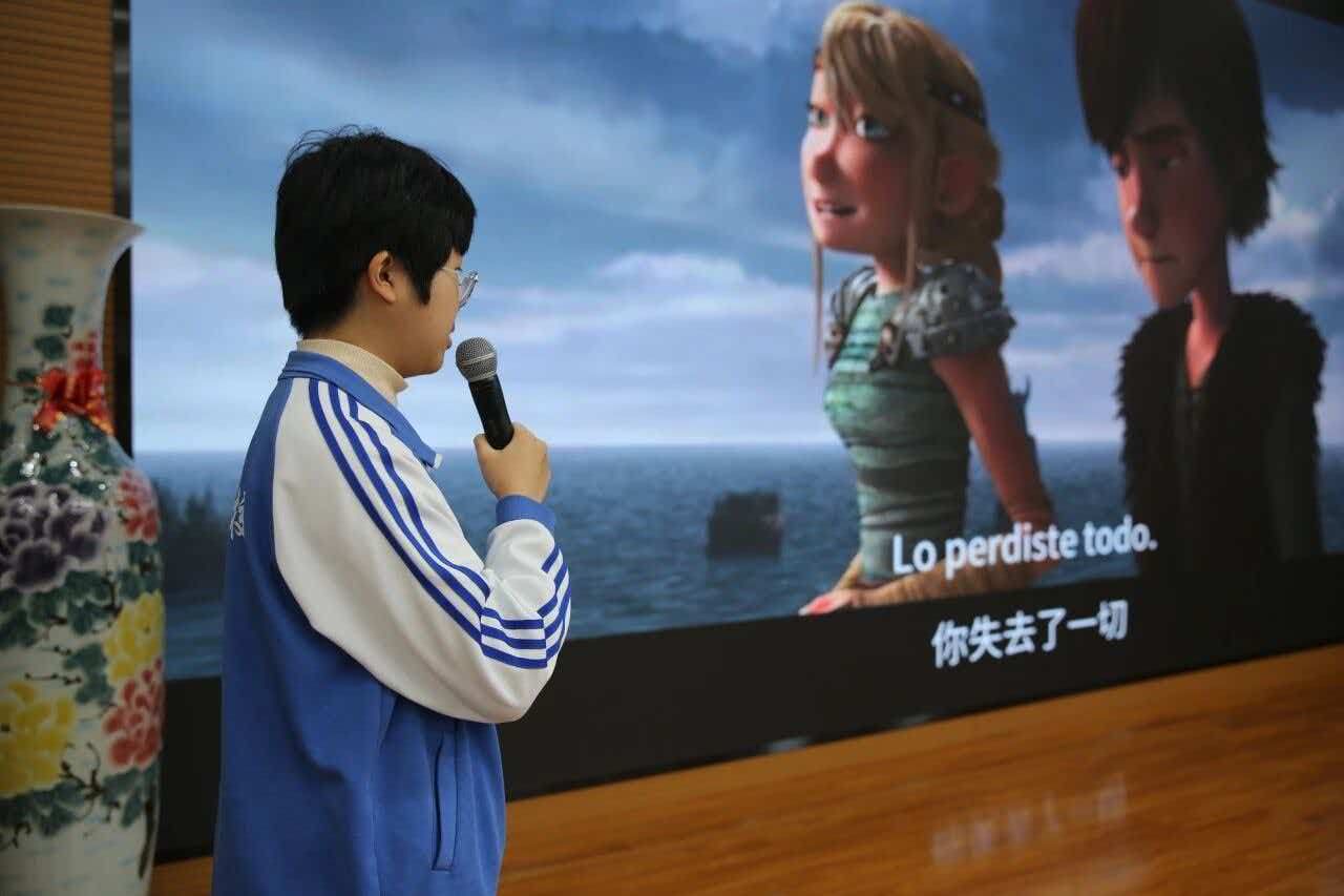 比赛中,卢海岑与王安淇同学选取经典动画《驯龙高手》片段作为配音作品。两位同学凭借扎实的西语语言功底、纯正的发音语调以及对角色情感的精准把握,将作品中的角色形象演绎得栩栩如生,赢得了评委团的一致认可。最终,他们凭借精湛的配音技艺,成功斩获“最佳角色演绎奖”,为学校赢得了荣誉。