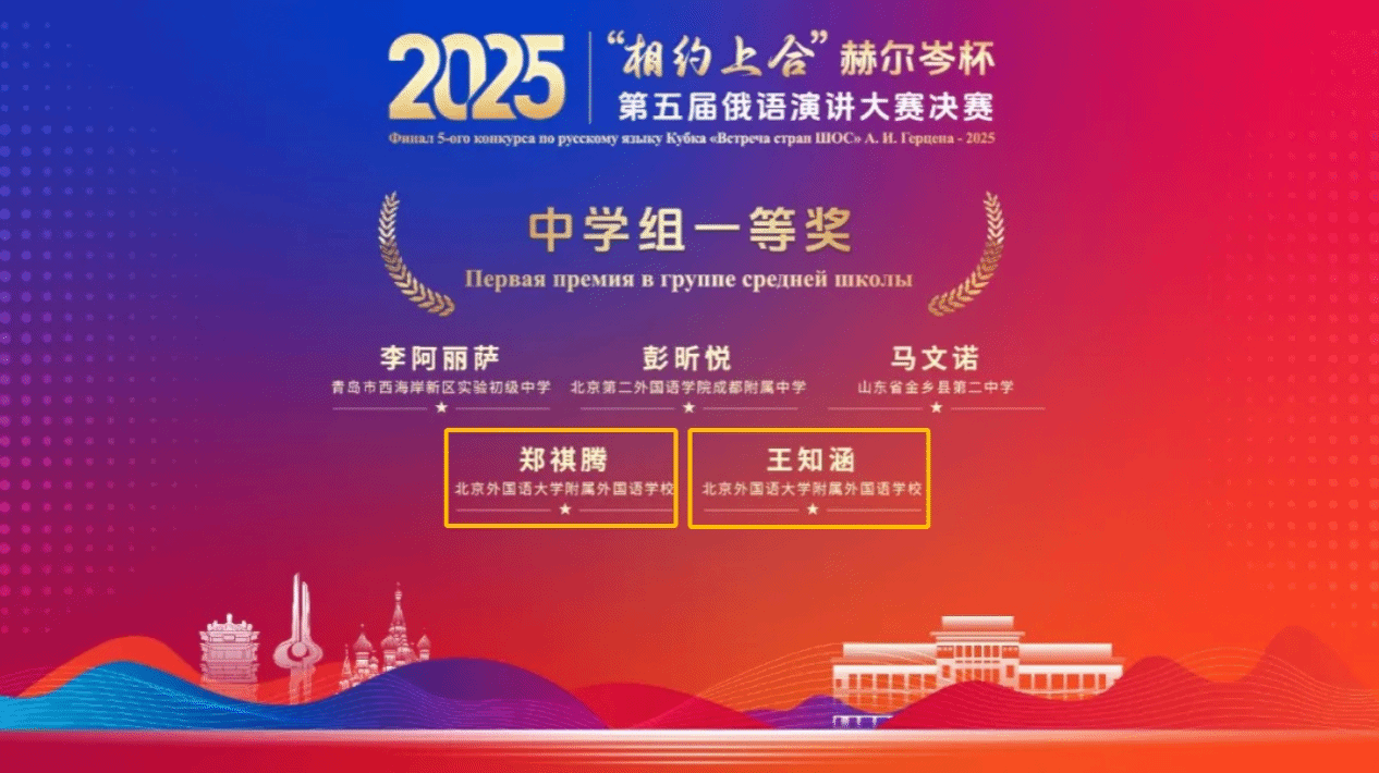 【喜报】北外附校俄语学子在“相约上合”第五届俄语演讲大赛中两人获全国一等奖、一人获全国二等奖